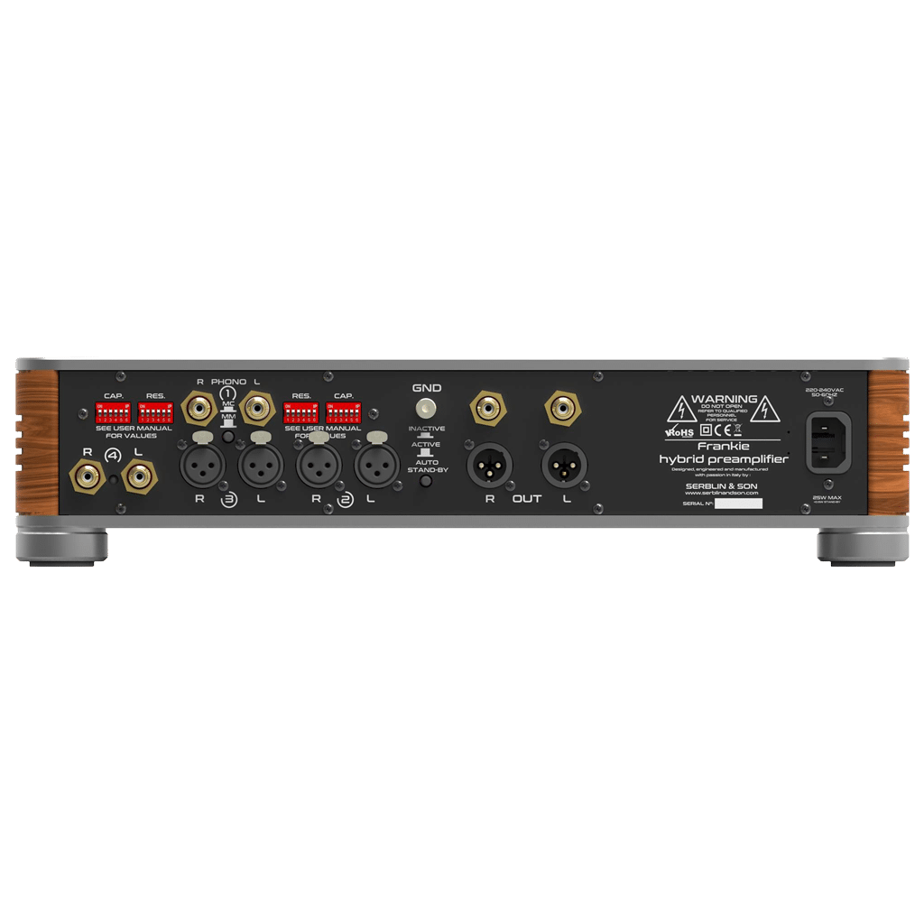 Der Vorverstärker auch über eine Infrarot-Fernbedienung gleichzeitig gesteuert werden.Der Frankie Hybrid-Vorverstärker wurde als idealer Partner für den Frankie Monoblock-Endverstärker entwickelt.